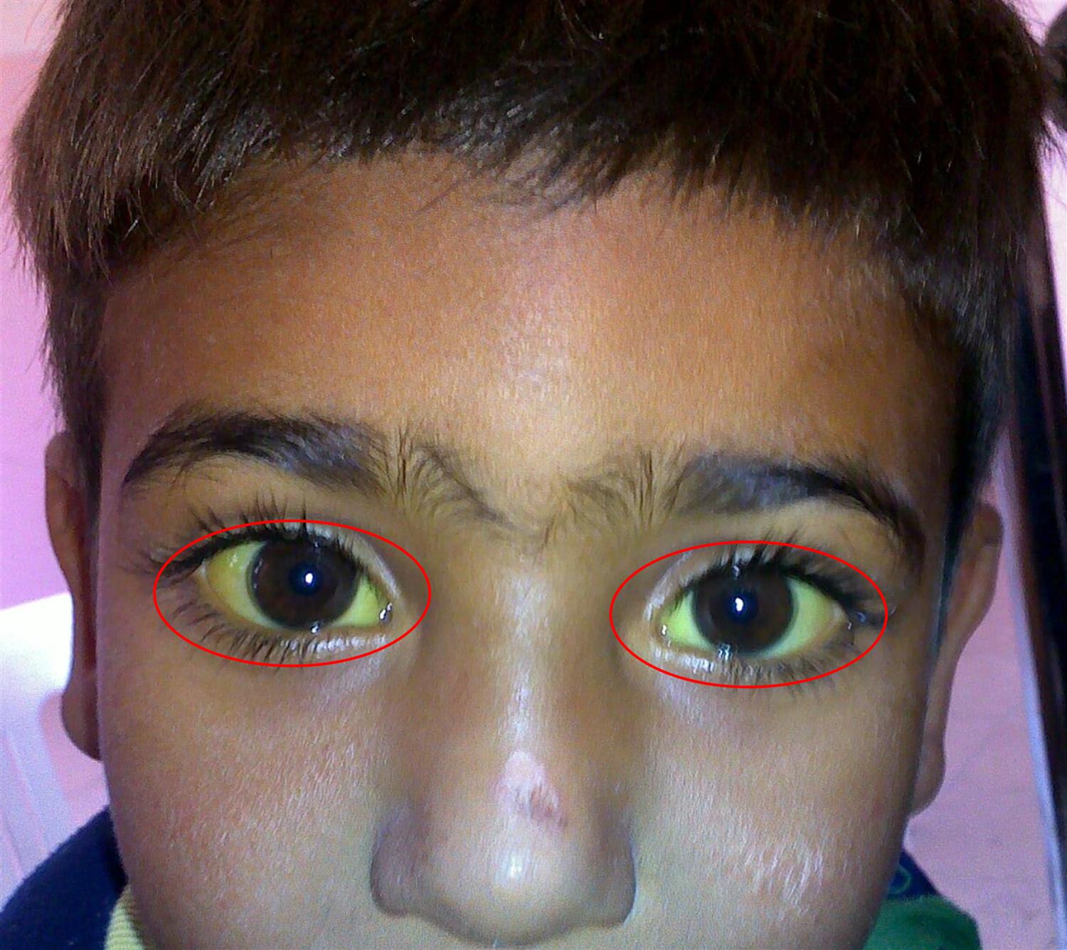 This patient with jaundice, normocytic hemolytic anemia, as well as a raised MCHC and RDW most likely has hereditary spherocytosis. The most specific test for confirming this diagnosis is an acidified glycerol test.Hereditary spherocytosis is an autosomal dominant disease that is caused by a mutation in red blood cell membrane proteins. The most common mutations involve spectrin, ankyrin, and band 3. Defective membrane proteins result in the loss of the outer membrane of erythrocytes, which leads to decreased erythrocyte surface area and the formation of spherocytes. Spherocytes are trapped and destroyed in the spleen, which results in splenomegaly. Laboratory studies are consistent with normocytic hemolytic anemia and commonly include an increased MCHC (due to decreased RBC volume), increased RDW (due to anisocytosis), and signs of extravascular hemolysis (increased LDH and indirect hyperbilirubinemia). The acidified glycerol lysis test or osmotic fragility test may be used for screening patients for hereditary spherocytosis, and the eosin-5-maleimide binding test can confirm the diagnosis. Treatment depends on the severity of the disease and can involve red blood cell transfusions, folic acid supplementation, or splenectomy.Manciu et al. review the diagnosis and treatment of hereditary spherocytosis. They discuss how total splenectomy remains the standard treatment in moderate and severe cases of hereditary spherocytosis. They recommend performing additional research on the efficacy and long-term outcomes of patients who receive partial splenectomy.Figure/Illustration A is a clinical photograph demonstrating scleral icterus (red circles). This finding is consistent with a hemolytic anemia leading to the production of bilirubin.Incorrect Answers:Answer 2: Direct Coombs test is used for the diagnosis of autoimmune hemolytic anemia (AIHA), which can present similarly with jaundice, splenomegaly, and an elevated MCHC; however, it primarily occurs in older individuals (> 40 years) and is associated with malignancy, drugs, or recent infection.Answer 3: Fluorescent spot test is used to diagnose glucose-6-phosphate dehydrogenase deficiency (G6PD deficiency), which can also present with jaundice and hemolytic anemia after medication use; however, it would not likely be precipitated by oseltamivir. The increased MCHC and RDW are more consistent with hereditary spherocytosis.Answer 4: Hemoglobin electrophoresis is used to diagnose hemoglobinopathies such as sickle cell disease or thalassemias. Hemoglobinopathies may also present with hemolytic anemia; however, these diseases do not typically have an increased RDW and MCHC.Answer 5: Serum iron level is useful in the diagnosis of iron deficiency anemia, which presents with a microcytic anemia and low iron levels.Bullet Summary: Hereditary spherocytosis is due to an autosomal dominant mutation in red blood cell membrane proteins and can be diagnosed with an acidified acid glycerol test.