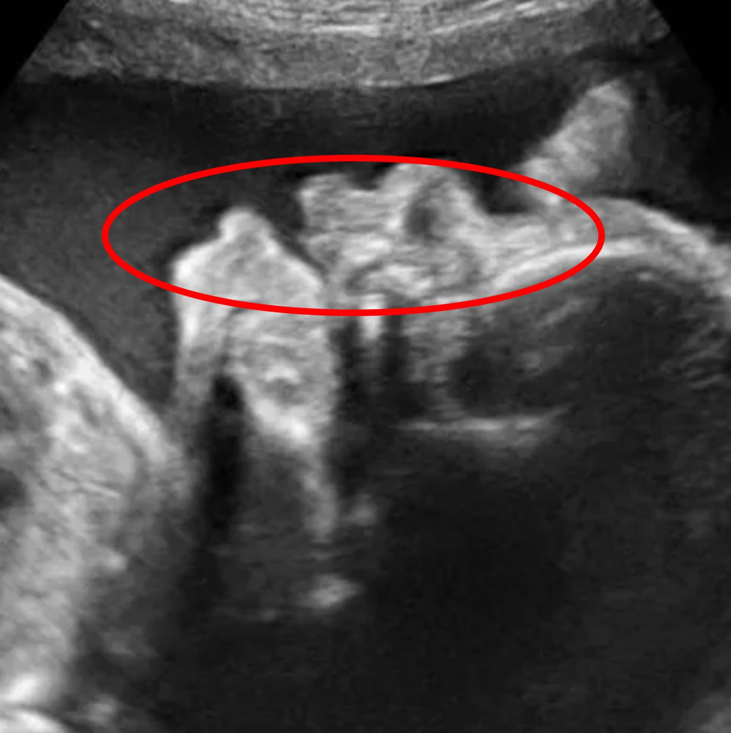 This pregnant patient with nausea, vomiting, severe abdominal pain, hyperammonemia, hypoglycemia, elevated aminotransferases, and thrombocytopenia, most likely has acute fatty liver disease of pregnancy (AFLP).AFLP is a rare disease that typically occurs in the third trimester of pregnancy. This disease occurs due to failure of fatty acid beta-oxidation and presents with right upper quadrant pain, nausea, vomiting, and jaundice. Pathology demonstrates acute liver failure secondary to extensive microvesicular fatty infiltration of the liver. Like other pregnancy-related disorders of the liver such as pre-eclampsia and HELLP syndrome, AFLP presents with elevated aminotransferases and leukocytosis. AFLP is distinguished by signs of acute-onset fulminant liver failure manifesting through laboratory findings of hypoglycemia, thrombocytopenia, hyperammonemia, and possible disseminated intravascular coagulopathy. Patients with AFLP can decompensate quickly with multi-organ failure and fetal compromise. Management is immediate delivery. Natarajan et al. review the role of 3-hydroxy fatty acid-induced hepatic lipotoxicity in AFLP. They find that maternal AFLP is highly associated with a mutation in mitochondrial long-chain hydroxy acyl-CoA dehydrogenase. They recommend further study of the effects of 3-hydroxy fatty acids in causing placental toxicity and fetal retinal pigmented epithelial lipoapoptosis. Figure/Illustration A is an ultrasound of a fetus showing normal facial morphology (red circle). There is no evidence of fetal abnormalities on this image.Incorrect Answers:Answer 1: Acetaminophen toxicity can present with signs of fulminant liver failure, although laboratory values are typically notable for aminotransferase values > 1000 U/L. This patient’s symptoms preceded her ingestion of acetaminophen.Answer 3: Eclampsia is a pregnancy disorder defined as pre-eclampsia with new-onset seizures. While this patient is hypertensive, she also has a normal urinalysis and signs of fulminant liver failure, which would not be explained by eclampsia alone.Answer 4: Hemolysis, elevated liver enzymes, and low platelets syndrome also causes hepatic inflammation and can present similarly with right upper quadrant pain, vomiting, thrombocytopenia, and elevated aminotransferases in a patient with pre-eclampsia. HELLP syndrome can be distinguished from AFLP because it lacks the symptoms of acute liver failure (hyperammonemia, hyperbilirubinemia, and hypoglycemia) found in patients with AFLP. Answer 5: Preeclampsia is a hypertensive pregnancy disorder that typically occurs during the third trimester. It is defined as hypertension with a systolic blood pressure > 140 mmHg or a diastolic blood pressure > 90 mmHg and proteinuria of more than 300 mg/24 hours.Bullet Summary: Acute fatty liver disease of pregnancy develops during the third trimester and presents with abdominal pain, vomiting, and laboratory findings of acute fulminant liver failure.