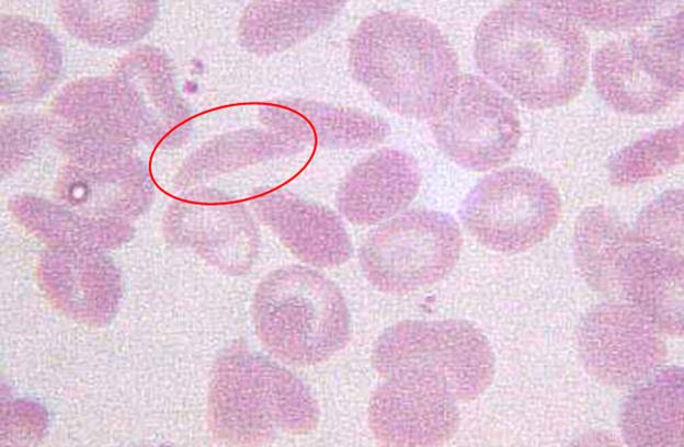 This patient with sickle cell disease who presents with right thigh pain, erythema, swelling, warmth, and painful ambulation most likely has acute osteomyelitis. The most common cause of acute osteomyelitis in patients with sickle cell disease is Salmonella enterica.Staphylococcus aureus is the most common overall cause of osteomyelitis. However, in patients with sickle cell disease, progressive vaso-occlusion of the splenic vasculature results in functional asplenia and splenic sequestration crises which result in splenic deficiency. The spleen plays an integral role in clearing encapsulated organisms from the human body. Patients with asplenia such as patients with sickle cell disease are especially susceptible to infections with encapsulated organisms such as Salmonella species. Salmonella is the most common cause of acute osteomyelitis in the sickle cell population. Initial workup generally includes measurement of serum inflammatory markers such as ESR/CRP, plain radiographs, magnetic resonance imaging, and blood/site cultures. The treatment for Salmonella osteomyelitis is with antibiotics. Kao et al. studied the most common causes of osteomyelitis in children with sickle cell disease. They discuss how Salmonella was the most frequently isolated organism. They recommend that early bone and blood cultures be obtained to distinguish causative organisms of osteomyelitis in children. Figure/Illustration A is a peripheral blood smear with crescent-shaped erythrocytes (red circle). These cells are characteristically seen in patients with sickle cell anemia.Incorrect Answers:Answer 1: Candida albicans is an uncommon cause of osteomyelitis that can be seen in patients abusing intravenous drugs or immunocompromised patients. This is not a common cause of osteomyelitis in patients with Salmonella.Answer 2: Kingella kingae is a gram-negative commensal organism that is a common cause of osteomyelitis in children aged 6 to 36 months.Answer 3: Pasteurella multocida is a facultative anaerobe that is found in the oral cavity of dogs and cats and can cause osteomyelitis in the setting of bite injuries.Answer 4: Pseudomonas aeruginosa is a rare cause of osteomyelitis that is seen in patients abusing intravenous drugs. It can also be a cause of osteomyelitis in the foot if there is a puncture wound through a shoe. It would be an uncommon cause of osteomyelitis in patients with sickle cell disease.Bullet Summary: The most common cause of acute osteomyelitis in the sickle cell disease population is Salmonella species.