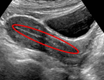 This patient presenting with secondary amenorrhea and a history of rigorous exercise most likely has the female athletic triad. This condition includes functional hypothalamic amenorrhea. Functional hypothalamic amenorrhea is a condition in which relative caloric deficiency leads to functional disruption of the normal pulsatile release of gonadotropin-releasing hormone (GnRH). This condition can occur due to severe caloric restriction, increased energy expenditure, or increased stress. The decreased GnRH release will result in decreased levels of follicle-stimulating hormone (FSH) and luteinizing hormone (LH), disruption to estrogen levels, and amenorrhea. A common associated clinical presentation is known as the "female athlete triad," which includes decreased calorie availability or increased energy expenditure through exercise, decreased bone mineral density due to a decrease in estrogen levels, and menstrual dysfunction. Treatment includes increasing caloric intake, behavioral therapy as needed, and possible estrogen replacement therapy.Ackerman et al. reviews the role of estrogen replacement in improving bone mineral density in patients with functional hypothalamic amenorrhea. They discuss how spine and femoral neck bone mineral density z-scores significantly increased with estrogen replacement. They recommend the use of transdermal estradiol over 12 months in improving bone mineral density in patients with functional hypothalamic amenorrhea. Figure/Illustration A is a pelvic ultrasound demonstrating an empty uterus with a closed myometrial cavity (red circle). This finding rules out pregnancy as a cause of amenorrhea.Incorrect Answers:Answer 1: Anorexia nervosa will often manifest with secondary amenorrhea in women. This patient has a normal BMI and no history of disordered eating. The mechanism of amenorrhea in the setting of anorexia nervosa relates to the same hypothalamic-pituitary-ovarian axis at play in functional hypothalamic amenorrhea wherein the state of energy deficiency from inadequate caloric intake disrupts normal pulsatile GnRH secretion, leading to decreased FSH, LH, estrogen levels, and subsequent amenorrhea.Answer 3: Hypothyroidism is a cause of secondary amenorrhea wherein abnormal thyroid function can lead to altered levels of sex hormone-binding protein, prolactin, and gonadotropin-releasing hormone, thus causing menstrual dysfunction. This patient does not present with other signs of hypothyroidism, such as fatigue, sensitivity to cold, dry skin, muscle weakness, weight gain, constipation, joint stiffness, or thinning hair.Answer 4: Polycystic ovary syndrome is a condition often associated with obesity in which hyperinsulinemia or insulin resistance is hypothesized to alter the hypothalamus feedback response, leading to the increased luteinizing hormone to follicle-stimulating hormone ratio, increased androgen levels, and decreased rate of follicular maturation leading to unruptured follicles. Patients will often present with amenorrhea or oligomenorrhea, hirsutism, acne, and decreased fertility.Answer 5: Pregnancy is a cause of secondary amenorrhea that is less likely in this patient given her lack of sexual history and other associated symptoms such as decreased appetite, nausea, and insomnia. A beta-human chorionic gonadotropin (beta-hCG) test should always be part of the workup for secondary amenorrhea.Bullet Summary: Functional hypothalamic amenorrhea is a condition in which caloric restriction, increased energy expenditure through exercise, and/or increased stress leads to a disrupted pulsatile secretion of gonadotropin-releasing hormone with the downstream effect of amenorrhea.